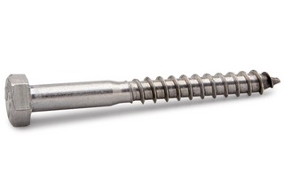DIN 571. Fransk treskrue. Sekskantet skrue med tregjenger. Brukes ved montering av grovere materialer i tre, for eksempel stolper.