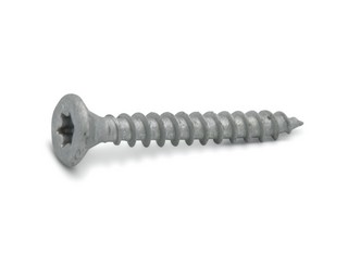 Utendørs treskrue med kutterspiss, stammefres og forsenket hode med riller.