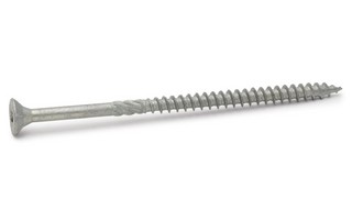 Utendørs treskrue med kutterspiss, stammefres og forsenket hode med riller.