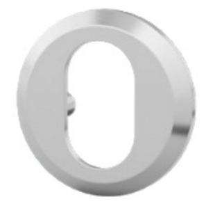 Til SIS låskasser. Brukes til ovalsylindere.Dekker hull rundt sylinder. Festes med skruer fra innsiden.