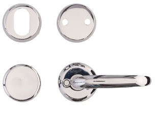 Brukes sammen med nødbeslag som opererer vrideren på innsiden av døren.