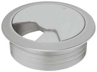 Kabelgjennomføringen er av plast, med svingbart segment i lokket, for arbeidsplassinnredning, hvit aluminium, RAL 9006, borehull Ø: 60 mm.