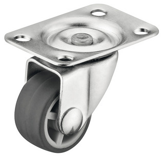 Verktøy- og apparathjul, lastekapasitet 15 kg, diameter 25 mm, styrbare med hard og myk løpeflate, myk løpeflate, grå.