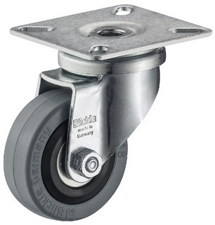 Verktøy- og apparathjul, med myk overflate: styrbar med monteringsplate, hjul Ø 50 mm, hjulbredde 18 mm, monteringshøyde 71 mm.