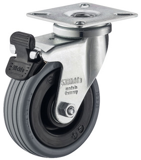 Verktøy- og apparathjul, med myk løpeflate, styrbare med brems med monteringsplate, hjul Ø 75 mm, hjulbredde 25 mm, monteringshøyde 100 mm.