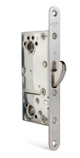 Låskassen er laget av rustfritt stål og har en moderne falleplassering med hakereilen i senter av låshuset. Denne kraftige låsen kan installeres i dørmiljøer som brukes hyppig.