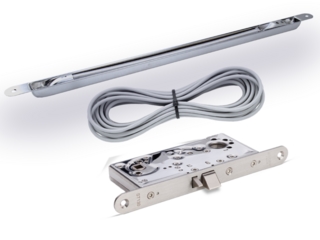 Solenoidlås STEP 130 Komplett set. Inkl. ST130, STEP karmoverføring ST1283, 10 m kabel ST1319 og 20 cm adapterkabel ST1320.