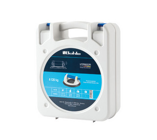 Veribor® pumpestøvsuger BO 601G er et ekte designhøydepunkt både når det gjelder design og komfort. Den er utstyrt med en vakuumsikkerhetsindikator som er godt synlig selv på avstand, og med en rekke funksjonelle detaljer. Takket være pumpemekanismen av høy kvalitet kan vakuumet bygges opp spesielt raskt. I tillegg sørger den store ventilknappen for raskere ventilasjon for å frigjøre vakuumet. Takket være dette kan sugeløfteren plasseres bedre på materialet og løsnes raskere etter bruk. Et større grepsområde sikrer optimal bærekomfort. For ekstra stabilitet og beskyttelse gir en plastring som er plassert på toppen av gummiplaten sikkerhet. Glassløfterens pumpevakuum kan løfte tunge laster på opptil 120 kg og er egnet for alle materialer og gjenstander med en gasstett overflate.