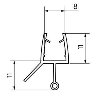 Tettelist for dusjdør, med vannavviser og nedre belg for glass 8mm