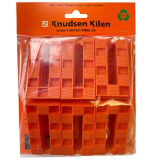 Knudsen Kilen Oransje Kile er først og fremst for montering av dører, vinduer og vegger, hvor Oransje Kile med sin spalte kan plasseres over en monteringsskrue og ved hjelp av to kiler kan du nivellere i ønsket avstand.